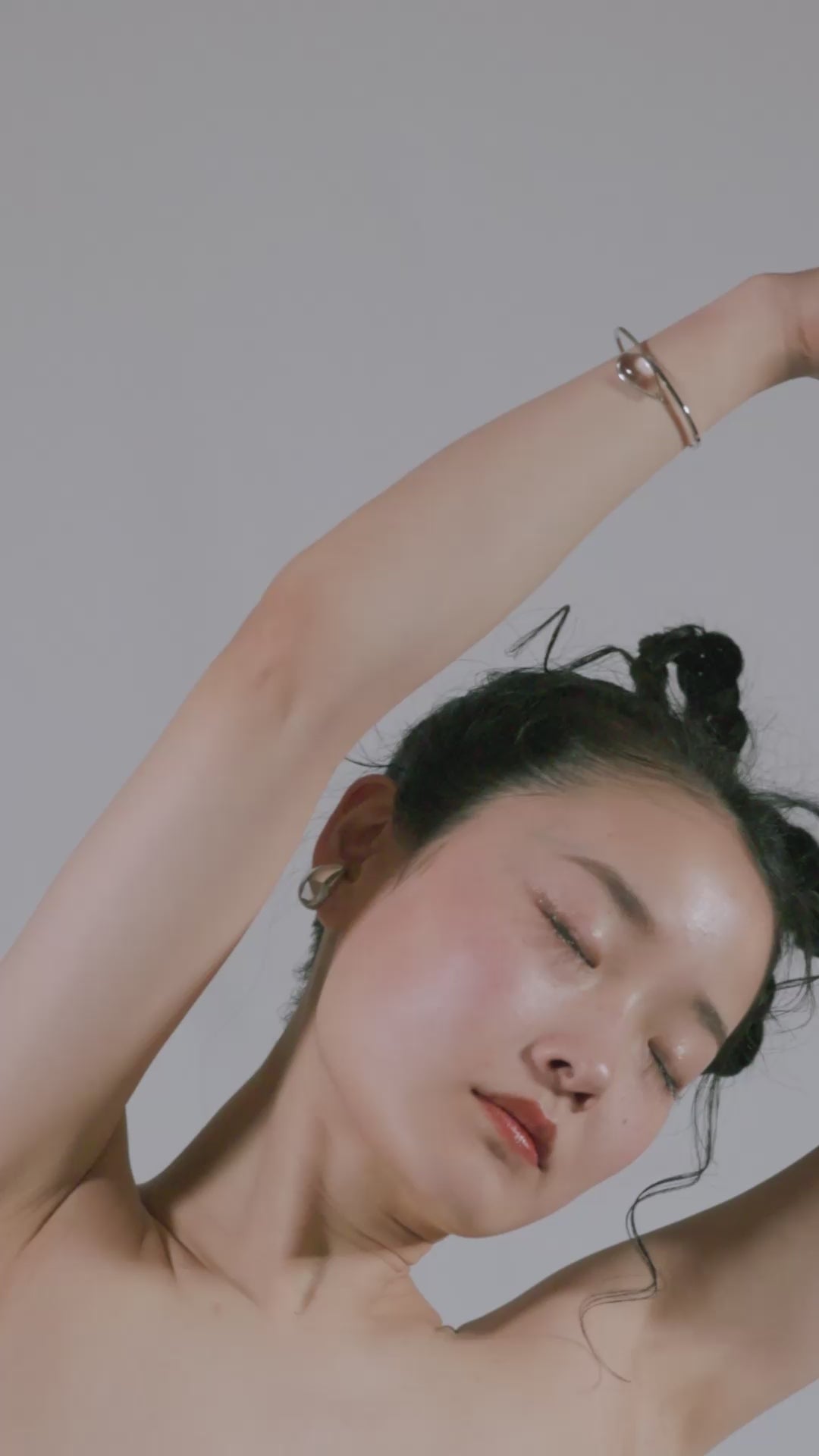 シルバーの美しい光とクリアな水晶の存在感が素肌の上で艶やかに輝く。