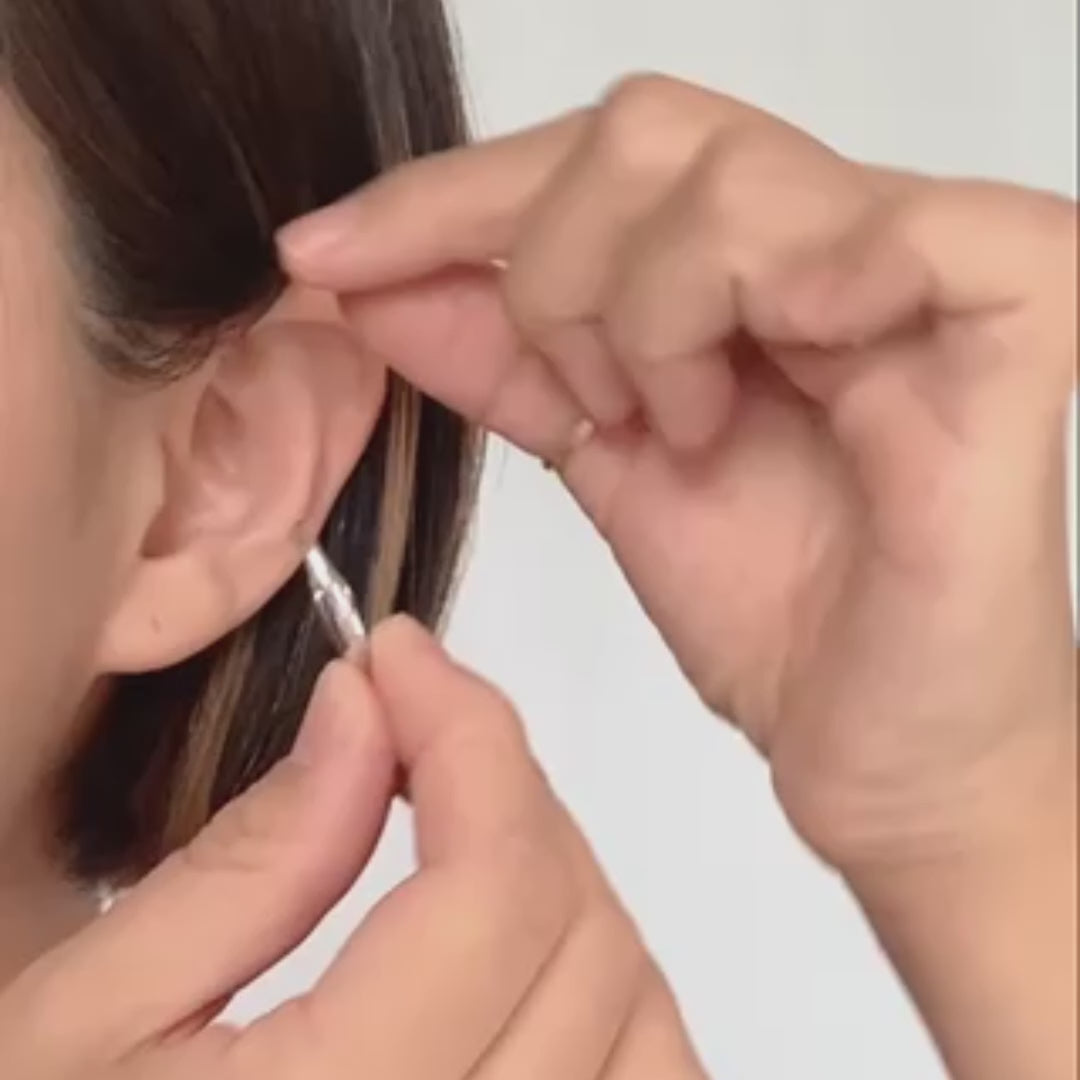 耳の厚みに合わせてシルバーのバネ性が効くように耳当たり部分を線にしました。