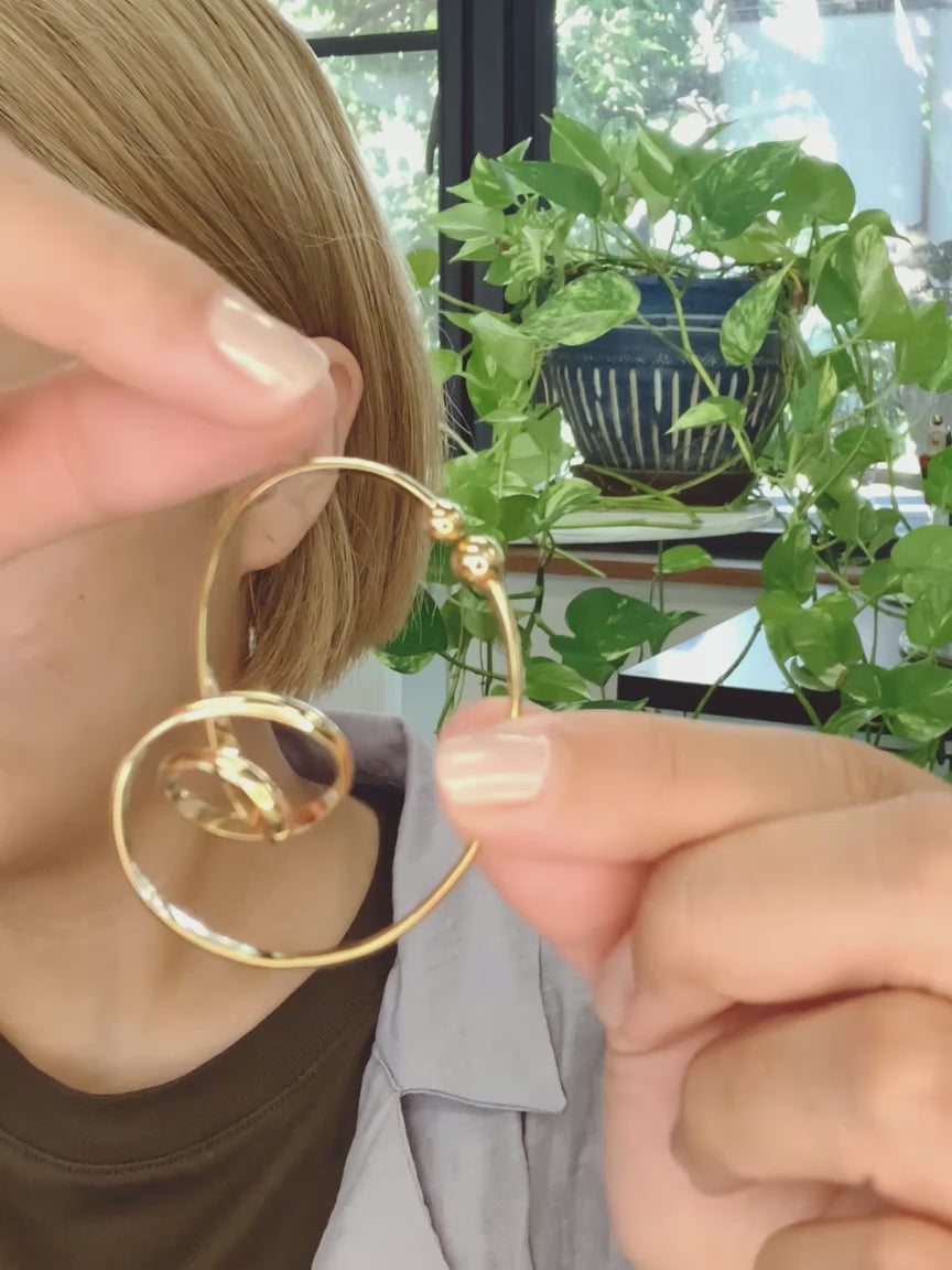 耳のくぼみにひっかけて着用するイヤーカフスです。立体感とボリュームがあるので、ロングヘアの方でも負けない存在感のあるアイテム。着用感も、シルバーのバネ性を活かしたホールド感が魅力。ボールが耳のくぼみにフィットして挟んでくれます。見た目以上に軽いので、着けたときに安心感があります。