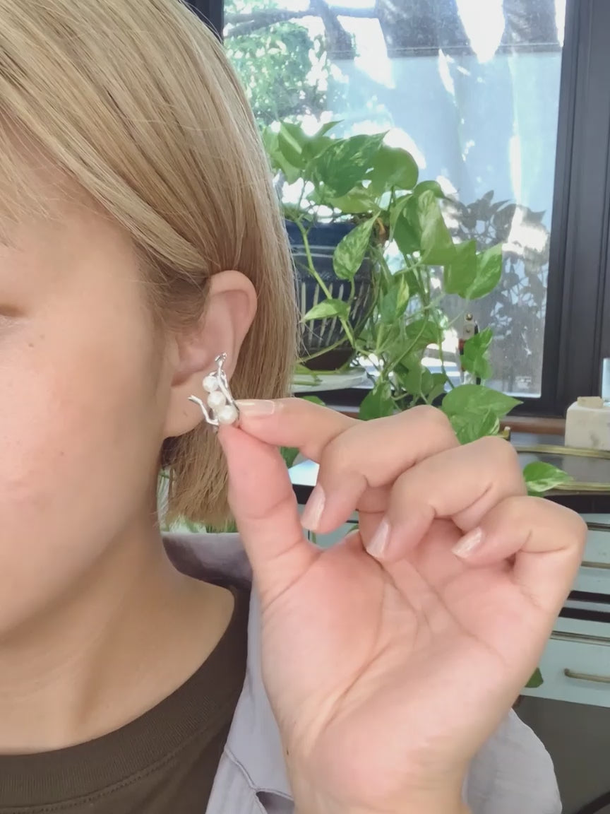 グラデーションパールの横にちょこん、としっぽのように浮かび上がるジグザグのラインがなんとも可愛らしいイヤーカフスです。上の位置でも、真ん中の位置でも着けられます。ボリュームと、ユニークさを兼ね備えた遊び心溢れるアイテムです。